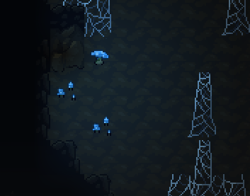 Finally, I was thinking about how I can leverage the new lighting system for the spider caves, and came with the idea of glowing mushrooms that can also be harvested, although I'm not sure what the effect is gonna be yet.